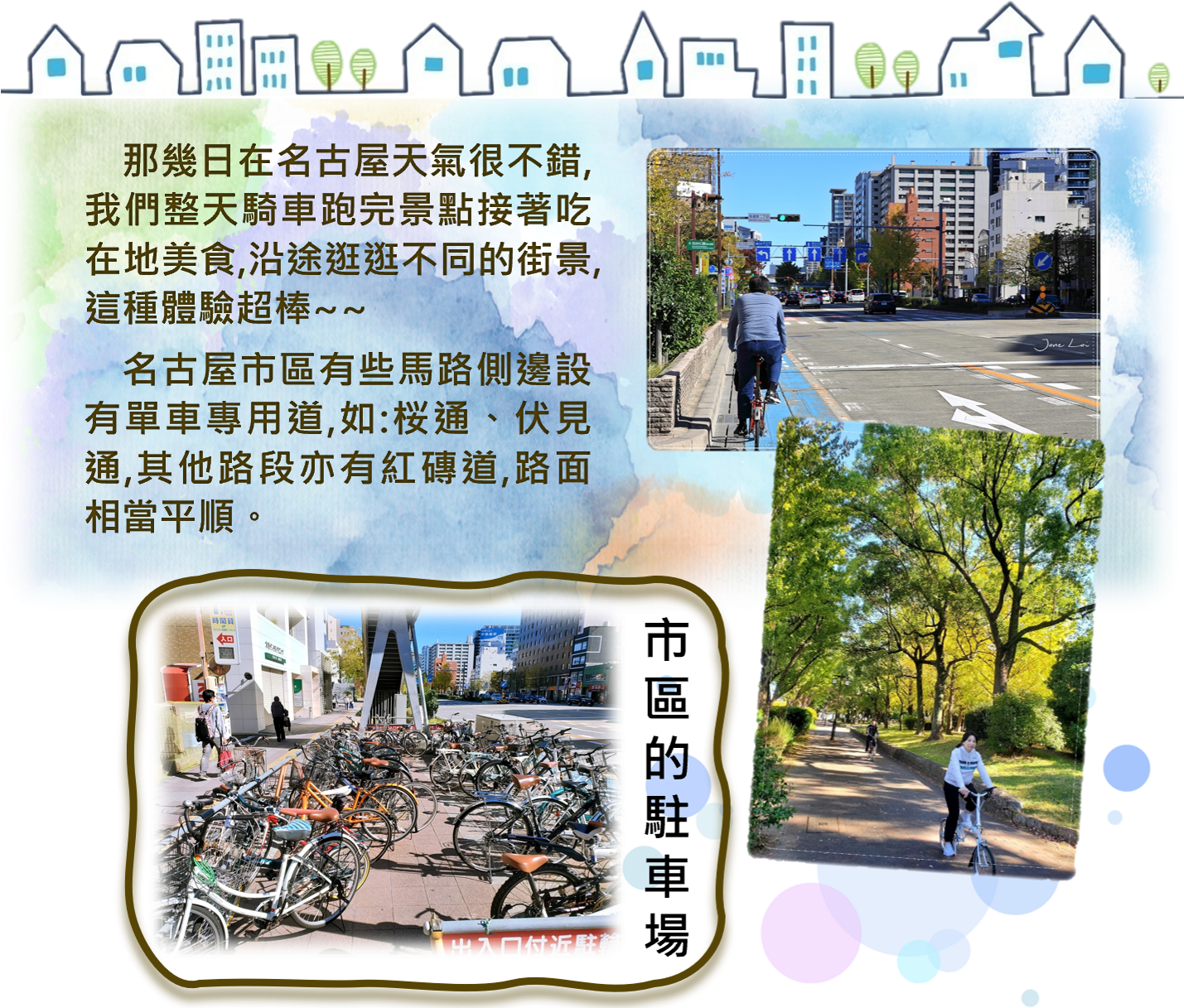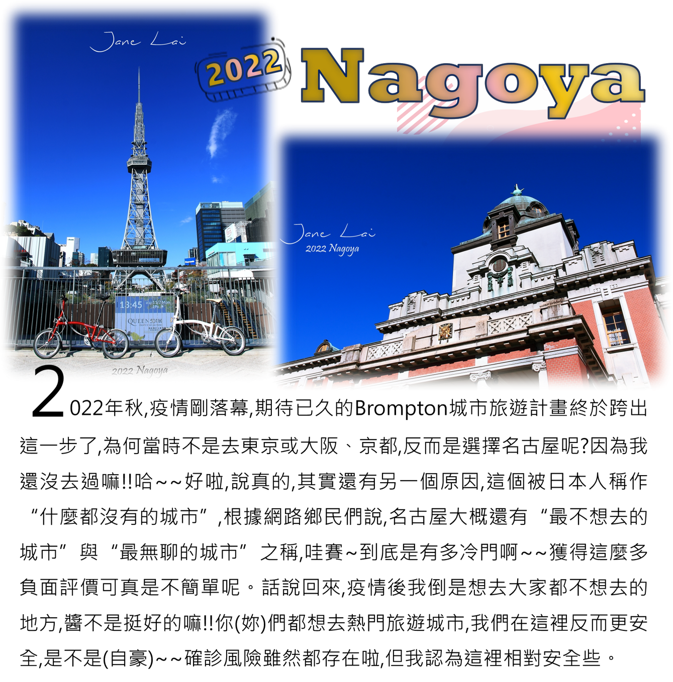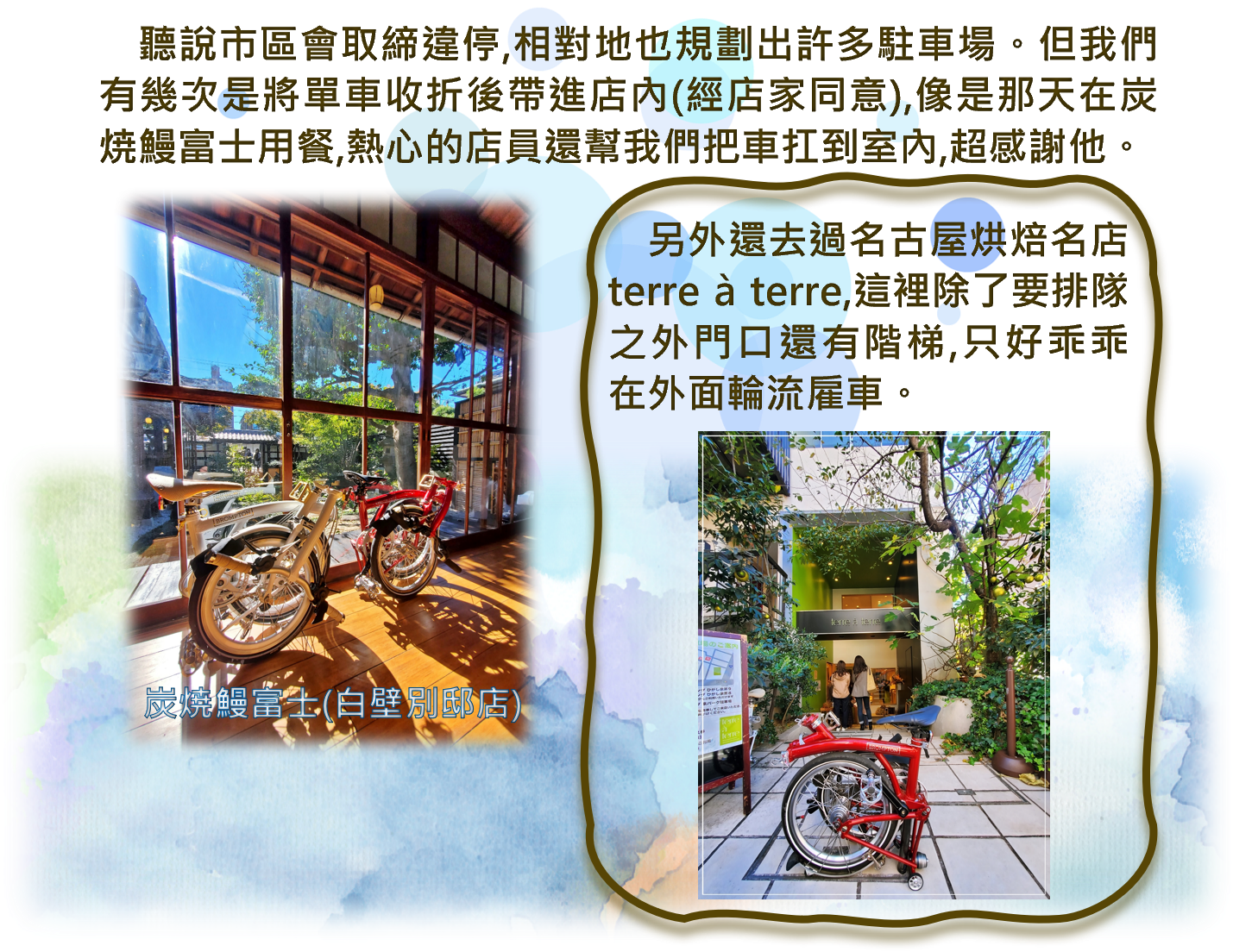 2.若以騎乘效率而言,當然是這台Brompton勝出,它的輪徑更大,同樣的距離我們可以更輕鬆到達,騎乘體感更優,我們在名古屋市區幾乎沒搭過地鐵,整天騎著它跑行程,愜意地穿梭在大街小巷裡探險.....